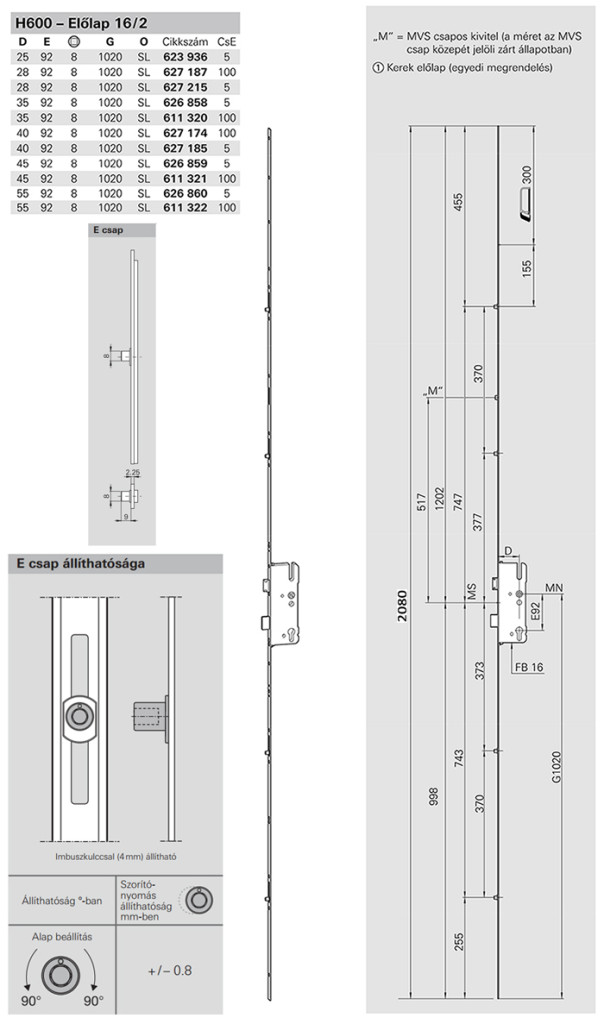 A zár univerzális kialakítású, a nyitásirány a zárnyelv megfordításával balos és jobbos ajtóhoz is igazítható. Csere előtt érdemes minden fontos méretet ellenőrizni, elsősorban: a gyártót, a dornméretet, a lyuktávolságot, az előlap szélességét és a záróelemek pozícióját, mivel ezek a paraméterek gyártón és típusonként eltérőek lehetnek.